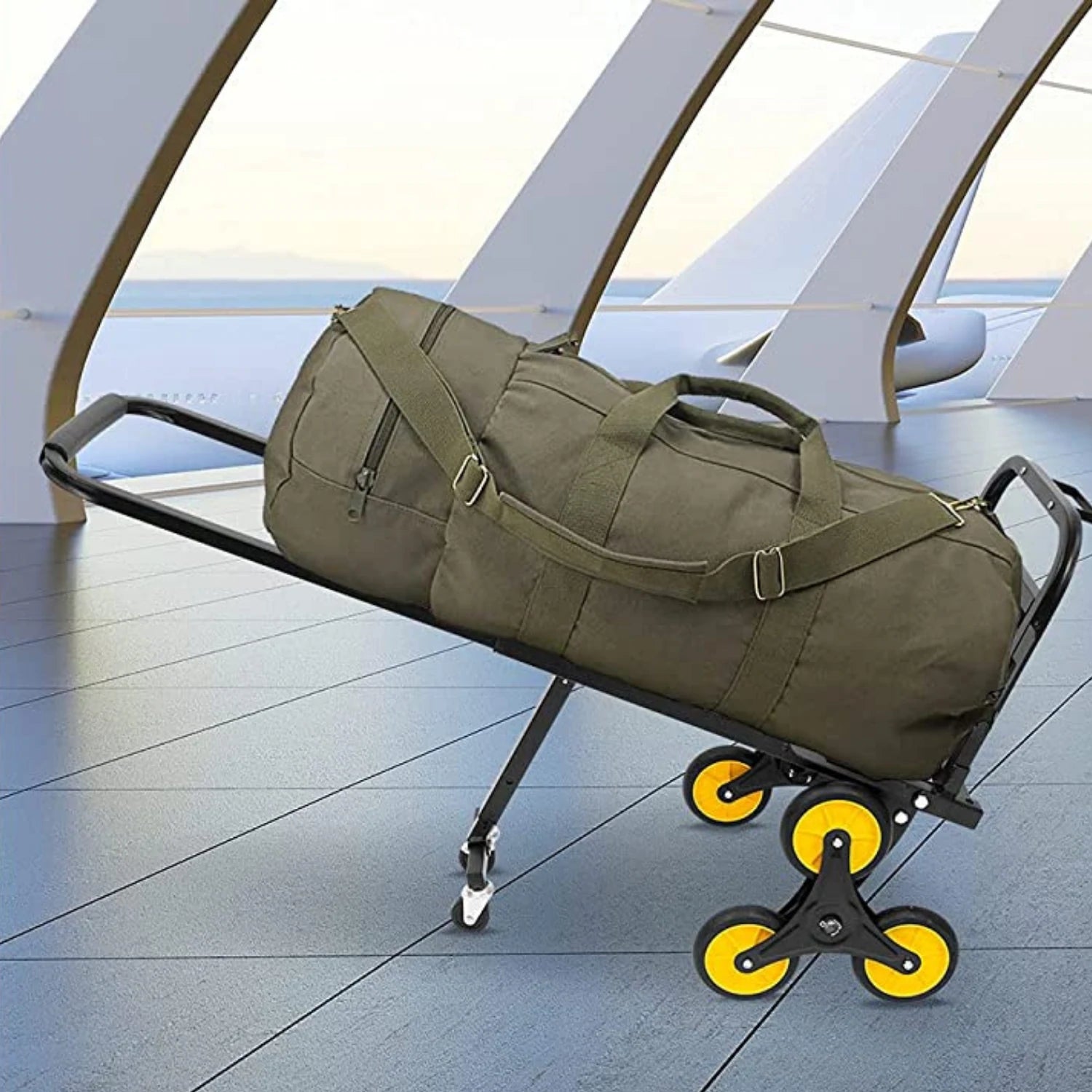 With its heavy-duty construction, this stair climbing hand truck can easily carry items weighing up to 136kg. Even when carrying heavy things, its triple-wheeled design distributes the weight evenly, allowing you to carry a lighter load.